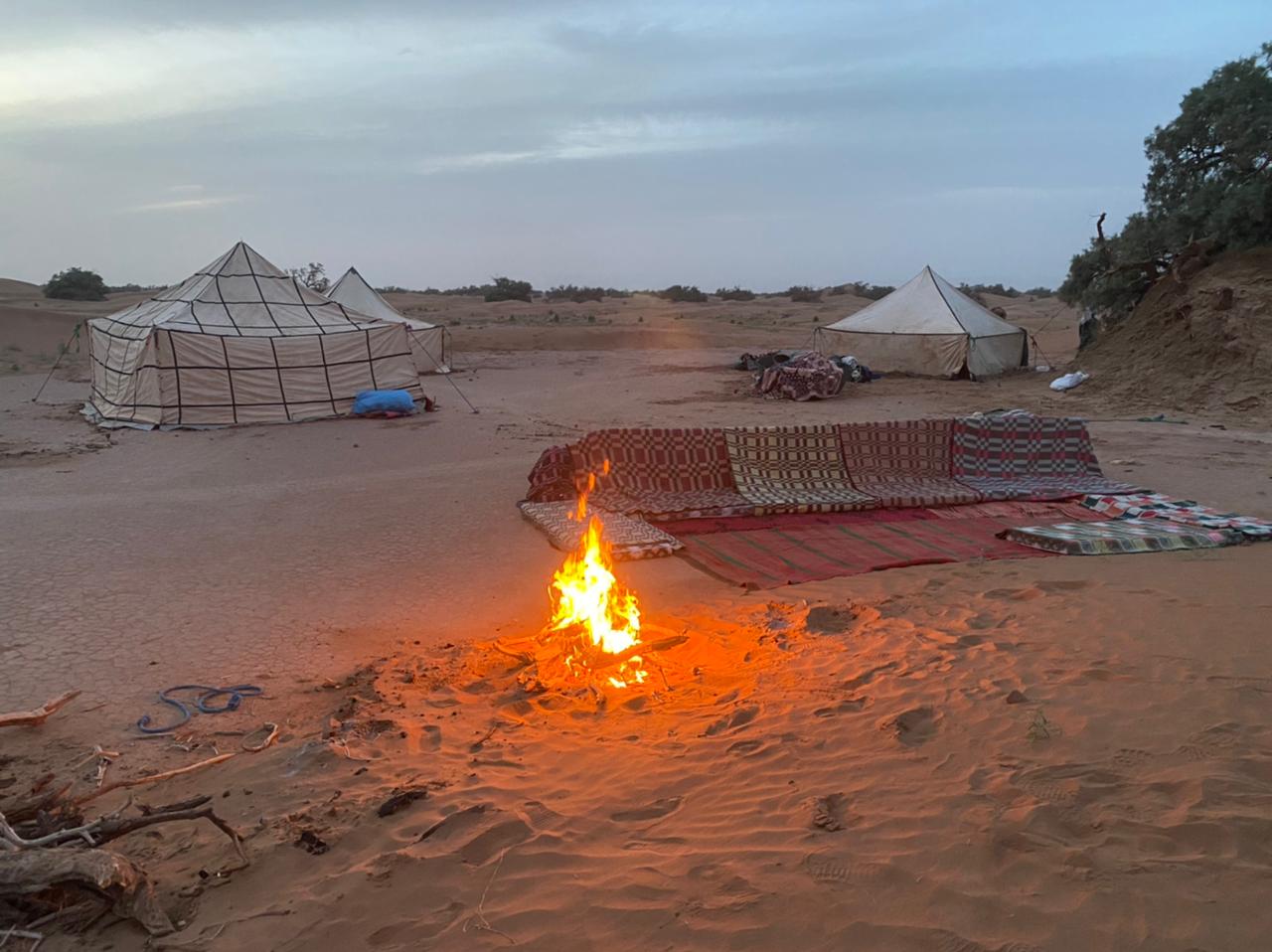 Arrivée au campement dans les dunes. Thé de bienvenue et installation.